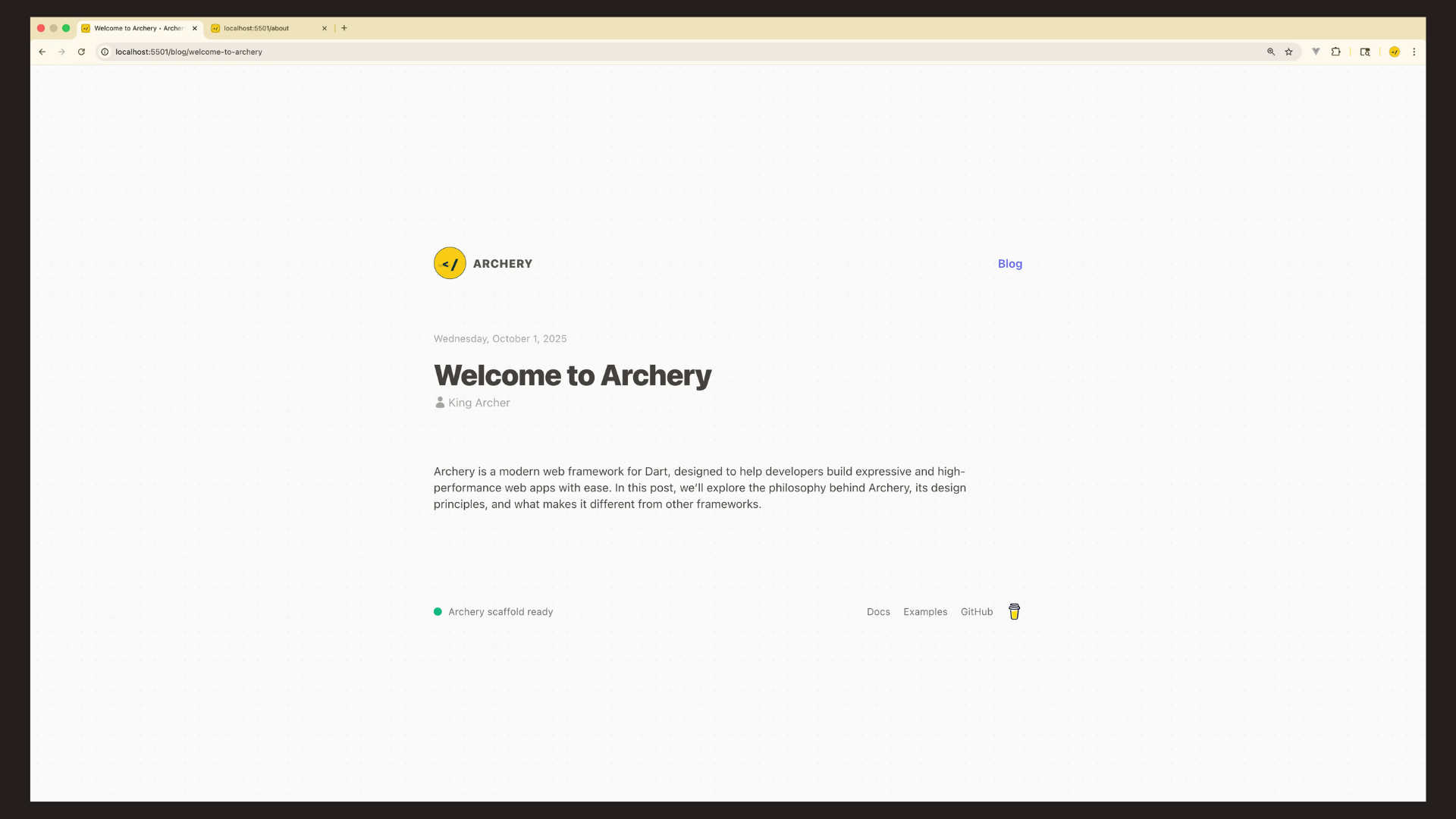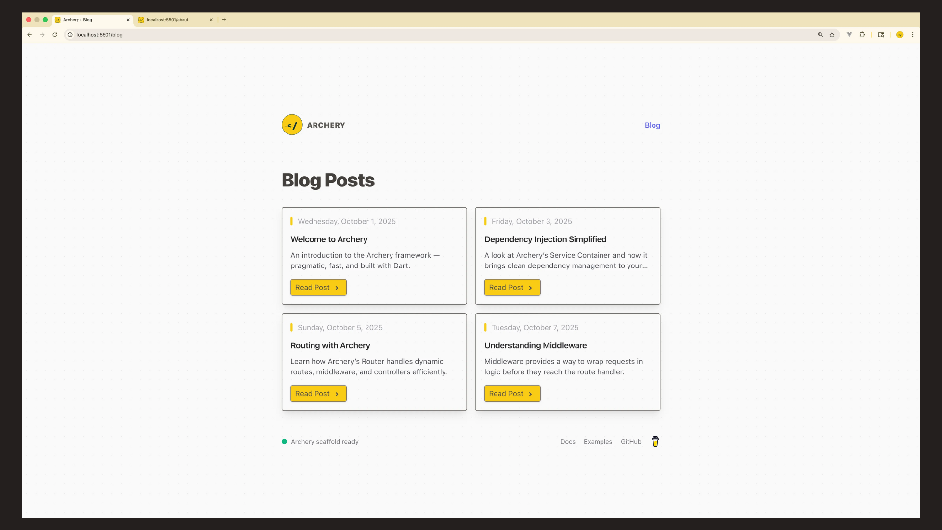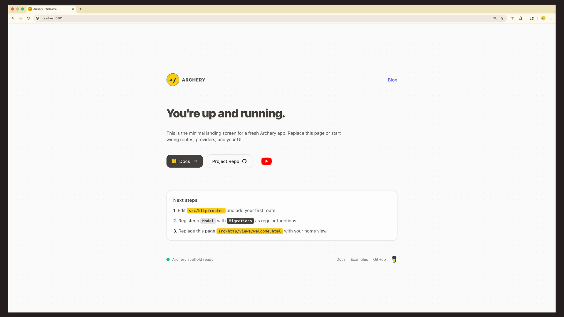 Archery is designed to be a fully featured framework for artisans, it therefore aligns with our goals to get you running as fast as possible with no configurations wherever possible.